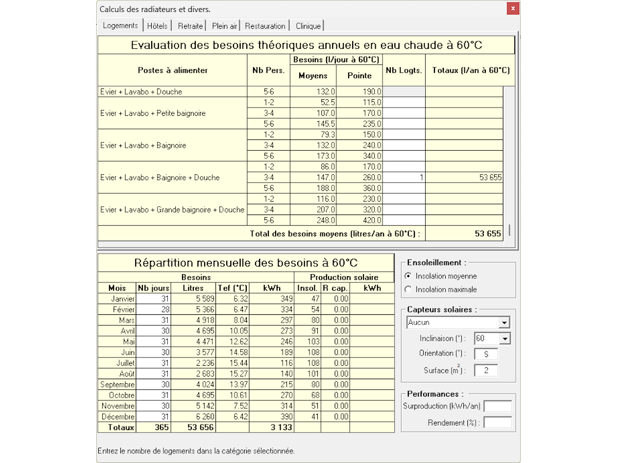 - Besoins de chaleur saisonniers pour chauffage et eau chaude sanitaire