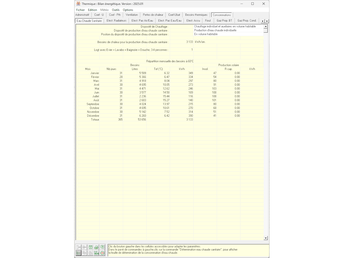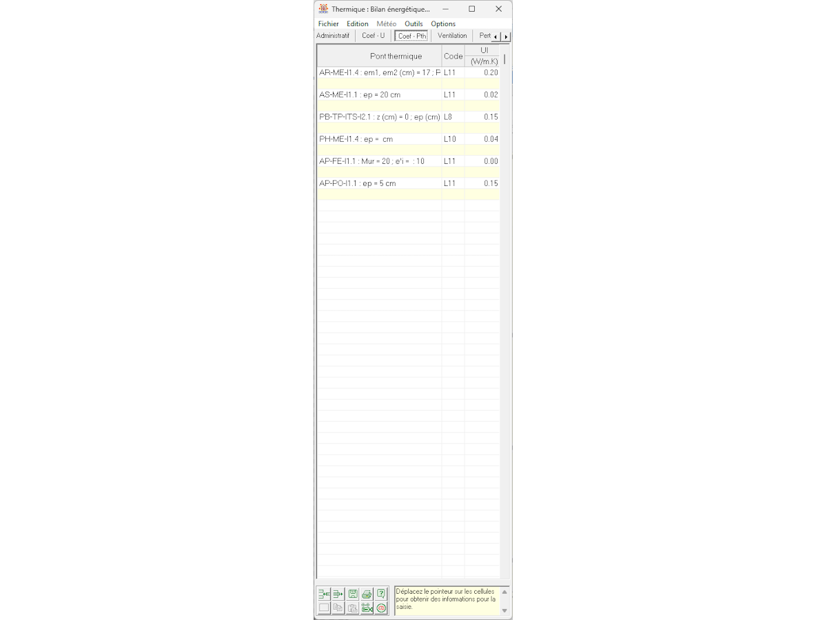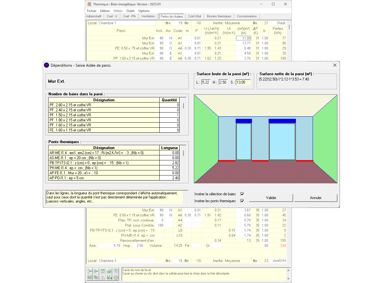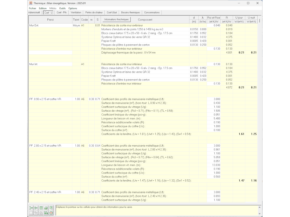 - Bibliothèques incluses : matériaux, parois types, ponts thermiques